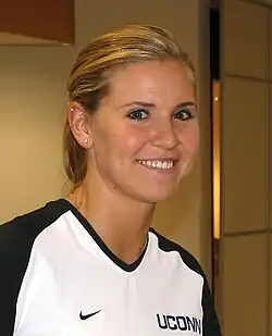 She went to Heritage High School for two years then transferred to Highlands Ranch High School where she helped the basketball team to win two Colorado State Championships. Strother was named a WBCA All-American. She participated in the 2002 WBCA High School All-America Game, where she scored nine points.[4] Strother was also named to play in the inaugural (2002) McDonald's All-American Game, where she was named co-MVP. During the summer after her freshman and sophomore years of high school, Strother played for a team that went to Paris for two weeks to play in a tournament. Strother played on an Athletic Amateur Union team and while traveling to tournaments, she used her time wisely visiting schools that would later help her in making her college selection decision. During the summer before her senior year of high school, Strother was selected to play on the USA Junior World Championship Team (now known as U19) in the Czech Republic.[5] Strother was the leading scorer in the win over China, and fifth leading scorer over all, helping the US to a 6–1 record and a bronze medal. Strother became only the second high school player in USA Basketball history to receive the honor of playing for the Junior World Championship Team, the other being Lisa Leslie in 1989. Geno Auriemma coached the USA team that year. After that she decided to commit to UConn. Strother was named the Naismith High School National Player of the Year in her senior year (2002) and was the 2001-02 girls' basketball Gatorade National Player of the Year.