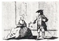 Anna Catharina Materna was not in reality considered to have much talent as an actor, but she knew how to portray a noblewoman, and was considered perfect for this on the stage, and she became a primadonna of the theatre in such parts, used much as a stage-ornament, and sometimes considered the first to interpret the soubrette role on the Danish stage. She was also the subject of many rumors and intrigues among her colleagues, especially from her great rival Anna Dorothea Lund. She was also regarded and talked about as a courtesan, and had a long list of lovers; in 1753, she was offered an allowance to become a kept woman, negotiations being handled by her mother, and in the same year, she retired from the stage. In her farewell letter to Ludvig Holberg, which she sent to him when she left the theatre, she said that her colleagues had never let a moment pass which they did not take to embarrass her; she also wrote about them; "I Know I have been more of a burden for them than an asset", but she also thanked Holberg "For the kindness always directed towards me", and tells him, that: "I have you to thank for a great deal of my happiness, a memory which will always remain with me." The same year, Holberg wrote a code of behaviour for the theatre and lectured those who mistreated their colleagues.