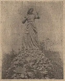 The first monument of Anna Dorota Chrzanowska erected in Trembowla in 1683 was last mentioned in 1829. Subsequently, in 1900, a second one was erected on the same site, work of Terebovlian sculptor J. Bohenek. It was destroyed in 1944 by Soviet troops. In 1982, the hill where monument once stood was rebuilt, and the slab was built, and the plate that remained undamaged was secured. On this spot opening of the third monument took place in July 2012, work of Roman Vilgushinsky.[2]