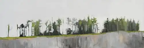 "This gifted young artist has spent the past two winters working at Joan Eardley's clifftop studio at Catterline. The results are very different from Eardley's wild, densely painted seascapes: cooler, more cerebral, with an almost icy range of colours. Yet something of Eardley's response to nature as an untameable force is echoed in King's bleakly attractive images of post-industrial landscapes: empty feral places where nature is slowly reclaiming the land."[11]