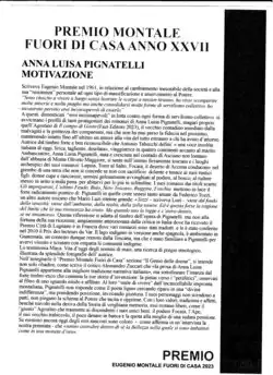 Prime Montale motivationPrize Montale Fuori di Casa for the whole of his work, Florence, Gabinet Viesseux, October 2023