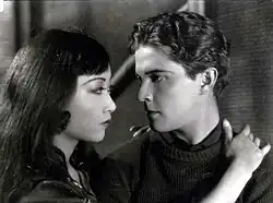 Wong made her last silent film, Piccadilly, in 1929, the first of five British films in which she had a starring role. The film caused a sensation in the UK.[67] Gilda Gray was the top-billed actress, but Variety commented that Wong "outshines the star" and that "from the moment Miss Wong dances in the kitchen's rear, she steals 'Piccadilly' from Miss Gray."[68] Though the film presented Wong in her most sensual role yet of the five films, once again she was not permitted to kiss her white love interest and a controversial planned scene involving a kiss was cut before the film was released.[69] Forgotten for decades after its release, Piccadilly was later restored by the British Film Institute.[70] Time magazine's Richard Corliss calls Piccadilly Wong's best film,[71] and The Guardian reports that the rediscovery of this film and Wong's performance in it has been responsible for a restoration of the actress' reputation.[50]