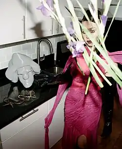 ![]() Anna Mikaela Ekstrand with 'Bad Woman' mask by Katya Grokhovsky. Photo: Elsa Hammarén | |