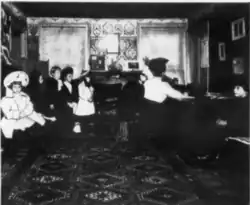 Whether her experience with the Herne tour was a catalyst or not, by 1899 Anna Taliaferro was an acknowledged theatrical agent for producers looking to cast children and teens for the theater. She had already "trained many children for the stage", and had successfully battled the Gerry Society's attempt to prevent Mabel from acting.[6] Her agency was listed in the New York City Business Directory's Dramatics section under her own name, at 125 W. 40th Street.[13] A reporter described the office as comprising two small rooms on the top floor of a little wooden building.[14] The New York Times reporter referred to it as an "actor's market" for children, and said the kids coming to apply were "with their mothers, older sisters, guardians-- and not a few are boldly alone, armed with supreme confidence".[14] Taliaferro did not advertise her agency, nor did it have a telephone. She operated through word-of-mouth when there were parts to be cast, suggesting new applicants visit her office at a certain date and time.[14]