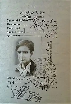 Schwarzenbach's Persian driver's licence, with stamp from Belgian Congo