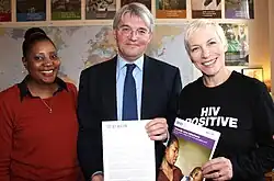 HIV campaigners, Memory Sachikonye (left) and Lennox (right) meet with the UK's Secretary of State for International Development Andrew Mitchell in December 2011.