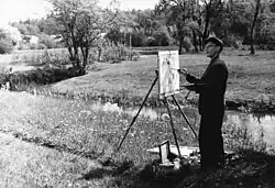 Ansis Artums (January 15, 1908 – January 13, 1997) was a Latvian landscape painter and master of still life, who worked in oil painting technique. He spent most of his life in Tukums. Artums is most widely known for his paintings of spring and summer landscapes, blooming gardens, flower vases, landscapes of Tukums, blooming chestnut trees, lilacs, and fritillaries.