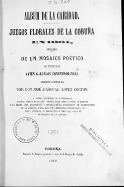 - ^ Album de la Caridad. Juegos Florales de La Coruña en 1861, seguido de un mosaico poético de nuestros vates gallegos contempornáneos Galiciana. Biblioteca de Galicia.