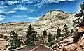 Ant Hill is a 6,641-foot (2,024 m) summit located in Zion National Park, in Washington County of southwest Utah, United States. It is composed of white Navajo Sandstone, and rises 1,400 feet (430 meters) above the Zion – Mount Carmel Highway. Ant Hill is situated 1.65 mi (2.66 km) east-northeast of The East Temple, and 2.4 mi (3.9 km) west-northwest of Checkerboard Mesa. Precipitation runoff from this mountain drains into tributaries of the Virgin River. Despite its benign name, an ascent of this mountain is a dangerous and exposed climb.