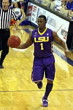 As a freshman for LSU in 2011–12, Hickey averaged 8.9 points, 3.6 rebounds and 3.8 assists per game.[1] He started 31 of 33 games and played in a first round loss in the 2012 National Invitation Tournament. The following year, Hickey was suspended for a time in the beginning of the season for university-related disciplinary reasons, which drew some national attention.[2] His absence was short-lived, and throughout his sophomore season he ranked toward the top of the national leader board in steals per game average. Head coach and LSU alumnus Johnny Jones, who played for the Tigers from 1980 to 1984 and registered 136 steals himself, conceded that his own spots in the LSU record book were dropping because of Hickey: "As tenacious and ferocious as he is guarding the basketball, I think it says a lot about him. I think it's wonderful. I think it's great. I think there were only two areas – steals and assists – that I was still kind of lingering around in. But I'm dropping pretty steadily because of the play of this guy."[3]