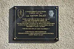 Anton Šalát (12 June 1892 – 17 September 1944) was a Slovak Catholic priest and politician. He served as a representative for Hlinka Slovak People’s Party in the Czechoslovak (1929–1939) and Slovak (from 1939 until his death) parliaments. He was shot by partisans in September 1944.