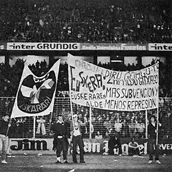Añoveros quickly identified himself as sympathetic towards Basque nationalism.[83] He refused to attend official feasts along the Francoist hierarchs,[84] established a good working relation with the local vehemently pro-Basque clerical entourage,[85] and spoke in defense of persecuted nationalist clergymen;[86] he also did his best to derail legal proceedings against those charged with subversive propaganda, like in a 1973 case of 4 priests from Portugalete.[87]