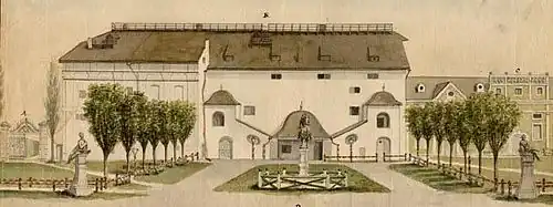 Cesti composed several of his operas for the new court theatre Neues Komödienhaus at Innsbruck which was commissioned by Archduke Ferdinand Charles based on plans of local architect Christoph Gumpp the Younger. That theatre was – yet unfinished – inaugurated in 1654 with the performance of Cesti's opera La Cleopatra. It was the first detached opera house in the German-speaking area with salaried staff and was later replaced by another theatre.[7][8] In 1655, Cesti's opera L'Argia was premiered in Innsbruck on the visit of the Swedish Queen Christina to celebrate her conversion to Catholicism.[9]