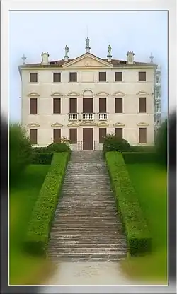 In 1772, he partially rebuilt the church in the grounds of the villa of Ca 'Cornaro. He also designed the churches at Borso del Grappa and Semonzo. In 1773, he began works for the church at Sant'Eulalia in the Treviso area (completed in 1794). Later he oversaw the construction of the church at Campolongo sul Brenta (built between 1793 and 1826). In 1800, he also designed and oversaw the completion of the barchesse at the Villa Rezzonico, built by Baldassare Longhena, in Bassano.[5] The south barchessa served as guest quarters, while the north barchessa was used as a rustic outbuilding.