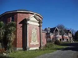 The Catholic Bishop of Christchurch, Patrick Lyons, bought the property for the Holy Name Seminary as a seminary staffed by the Society of Jesus established for the training of priests. The ageing archbishop of Wellington, Thomas O'Shea, caused great amusement at the formal opening in February 1947 when he talked about the opening of a "cemetery", and then fell asleep during Prime Minister Peter Fraser's speech.[2] The church added a chapel, a library, lecture halls and a dormitory, which ran perpendicular to the original house. All the design work was carried out by the architectural firm Collins and Harman.[3] The seminary closed in 1978 when the church merged the training facility with their school in Mosgiel, and then ran it as student accommodation under the new name Campion Hall, given the proximity to the University of Canterbury. In total, the building has 279 rooms, including over 100 bedrooms.[2]