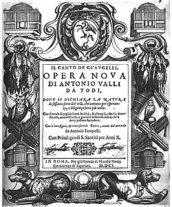 Antonio Valli da Todi (fl. 1600) was an Italian fowler and writer noted for the book Il Canto degl'Augelli (Italian, 'The song of the birds'), (1601).