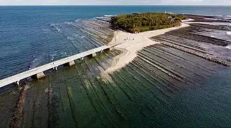 Aoshima (青島, Aoshima) is an island located in Miyazaki, Miyazaki Prefecture, Japan. The island has a surface area of 4.4 hectares (10.9 acres) and a height of 6 metres (20 feet). The island is part of the Aoshima Shrine. Miyazaki′s Aoshima neigbbourhood consists of the island and the opposite coastal strip, where the Aoshima Subtropical Botanical Garden is located.[1]