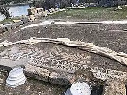 There are ruins of a necropolis, a cistern, city walls and floor mosaics of a 4th-century church named St. Panteleon (The church was a temple prior to Christianity).[3] In 1987, the German archaeologist Ludwig Budde published his book St. Pantaleon von Aphrodisias in Kılikien about the church. He had studied the remaining architecture as well as the mosaics in the nave and in one side aisle.[4] But many remaining mosaics are not unearthed yet.[5]