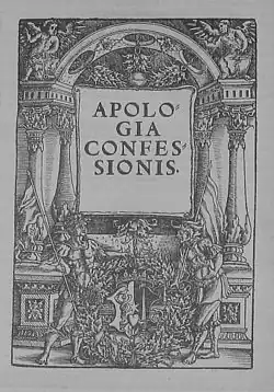 The Apology of the Augsburg Confession (German: Apologie des Augsburger Bekenntnisses) was written by Philipp Melanchthon during and after the 1530 Diet of Augsburg as a response to the Pontifical Confutation of the Augsburg Confession, Charles V's commissioned official Roman Catholic response to the Lutheran Augsburg Confession of 25 June 1530. It was intended to be a defense of the Augsburg Confession and a refutation of the Confutation. It was signed as a confession of faith by leading Lutheran magnates and clergy at the meeting of the Smalkaldic League in February, 1537,[1] and subsequently included in the German [1580] and Latin [1584] Book of Concord. As the longest document in the Book of Concord it offers the most detailed Lutheran response to the Roman Catholicism of that day as well as an extensive Lutheran exposition of the doctrine of Justification.