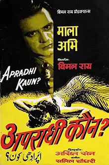 Apradhi Kaun? (transl. Who is the perpetrator?) is a 1957 Indian Hindi-language mystery thriller film directed by Asit Sen and produced by Bimal Roy. The film stars Abhi Bhattacharya, Mala Sinha and Gajanan Jagirdar.[1][2] It is based on the Bengali novel Kaalo Chhaya by Premendra Mitra.[3]