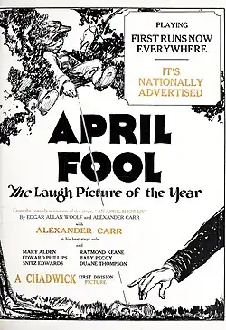 April Fool is an American romantic comedy silent film released in 1926. The 67 minute black and white film with subtitles stars Baby Peggy, Alexander Carr and Duane Thompson. It was directed by Nat Ross.[1][2]