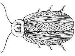 Apthoroblattina is an extinct genus of primitive cockroaches from the Carboniferous period. Fossils of the genus have been found in England, Wales, the United States, and Russia.[1] The paratype specimen for the species A. johnsoni is recorded to have a total length of 43 mm (1.7 in) and a width of 38 mm (1.5 in),[2] while the type specimen of A. sulcata is noted to have been up to 45 mm (1.8 in) in length and 25 mm (0.98 in) in width if complete.[3]