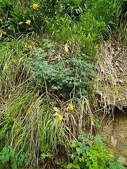 Aquilegia fosteri is native to northwestern Arizona and Zion Canyon in Utah, where it grows high on sandstone canyon walls in rock crevices.[3][4]
