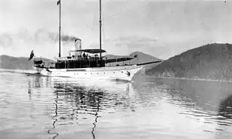 In 1910, the yacht was sold to Herbert E. Law, a resident of San Francisco, California, and subsequently taken from Boston around South America to the west coast of the United States. On January 1, 1910, it was announced that William P. Eno had sold Aquilo to Herbert E. Law, of San Francisco, and James H. Moore, of Seattle.[5][8] Law and Moore had recently acquired steel interests all along the west coast of the United States.[5] These were formed into a company called "Western Steel", which held extensive ore deposits in the Puget Sound region.[7] The purpose of the yacht was announced as being to call upon the various places where the concerns of Law and Moore were located.[5] Western Steel was based in Irondale, Washington.[9]