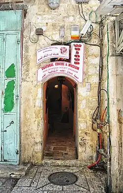 Wujud (literally, "existence") is a cultural center and museum celebrating Palestinian heritage housed in a historic building donated by the Greek Orthodox Patriarchate.[2] The museum overlooks one of the two Old City dry pools, Hezekiah's Pool, also known as the Bath of the Patriarchs. Built during the Mamluk period, used by the Ottoman military, and then as a residential home at the end of the British Mandate, the building was neglected for 42 years before it was renovated and restored on May 14, 2010. Wujoud includes an ethno-museum, cultural center and a cafeteria.[3]