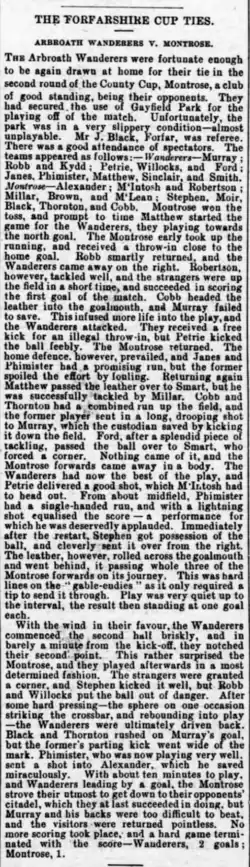 - ^ "Arbroath Wanderers v Montrose". Arbroath Herald: 7. 5 December 1895.