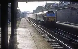 Arbroath railway station serves the town of Arbroath in Angus, Scotland. The station is 17 miles (27 km) east of Dundee on the line between Dundee and Aberdeen, between Carnoustie and Montrose. There are two crossovers at the north end of the station, which can be used to facilitate trains turning back if the line south to Carnoustie is blocked.[4] ScotRail, who manage the station, provide most of the services, along with CrossCountry, London North Eastern Railway and Caledonian Sleeper.