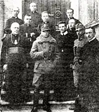 While Wilhelm was in hospital, the First World War ended, the Austro-Hungarian Empire collapsed, and the Habsburg dynasty was dethroned.[1] In Eastern Galicia, the West Ukrainian National Republic was declared, and Ukrainians in Bukovina sought, unsuccessfully, to unite with it.[1] Romanian forces occupied Bukovina, prompting Wilhelm to flee to Lviv to avoid arrest.[1] When Lviv fell under Polish control, he moved to the Carpathian region, where he hid in monasteries for nearly six months.[1]