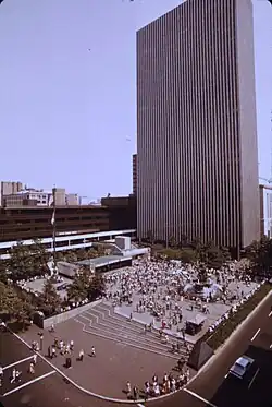 Fountain Square in Cincinnati, redesigned in 1968 by RKTL Associates and pictured in 1973.
