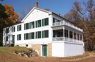 Arcola Mills is a historic house in the unincorporated community of Arcola, Minnesota, United States. Built in 1847, it is considered the third-oldest and largest all-wood-frame house still standing in Minnesota.[2][3] It was the home of brothers Martin and John Mower, who established one of the first sawmills on the St. Croix River and the community around it. The house and the remnants of the nearby mill were listed on the National Register of Historic Places in 1980 as the John and Martin Mower House and Arcola Mill Site for having local significance in the themes of architecture, exploration/settlement, and industry.[4] The property was nominated as an "excellent example" of Greek Revival architecture and for its association with the region's early settlement and lumber industry.[5] The property now operates as a non-profit event and education center.[6]
