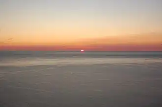 On the way to Arctic View, one drives through a wind farm that was built by Norsk Hydro. Here, at the edge of the Barents Sea, there is a view of the western part of Finmark county, and the place is a popular spot to watch the midnight sun, which can be seen from May 14 to July 31. The sun reaches its lowest point at 12:14–12:24 a.m. The most famous and popular place to view the midnight sun, North Cape, is located about 50 kilometres (31 mi) to the northeast.