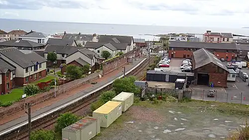 Upon electrification of the Ayrshire Coast Line, the station was reopened on 19 January 1987,[2] now unstaffed and on a far smaller scale: the double track to the harbour was singled and the Up platform removed, meaning trains from both directions would now have to use the former Down platform. After electrification, the nearby level crossing gates remained for a number of years but have since been removed. The station buildings remained unused but were later refurbished for use as commercial properties and the branch lines into the bay platform at the station were lifted. In the early 2000s, the surviving station office buildings were demolished and replaced by a contemporary red-brick commercial unit. The goods shed remains as private property.