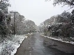 The atmospheric circulation is controlled by the two semi–permanent South Atlantic and South Pacific highs,[7]: 18 and a seasonal low-pressure system east of the Andes (called the Chaco Low).[8][9] During summer, the interaction between the South Atlantic high and the Chaco low causes the low-pressure system to bring northeasterly and easterly winds that carry moisture to the region, particularly in the northern parts.[5][6][9] The movement of moist air into the region during the summer results in very high precipitation.[7]: 20 Most of the moisture comes from the east since the Andes block any moisture from the Pacific Ocean.[10][5] Cold fronts that travel northwards to the region can produce precipitation during the summer months and is more prominent in the southern parts of the region.[7]: 18 [9] For example, in Tucumán Province, these cold fronts are responsible for 70% of the rainfall in that province.[7]: 18 In contrast, during the winter months, the Chaco low attracts air masses from the South Pacific high, creating a dry and cold wind.[9] This effect is more prominent in the winter months, when the intensity of the cold is more stronger.[9] The Intertropical Convergence Zone reaches the region during the summer months, leading to low pressure, and unstable air masses due to the relatively high land temperatures compared to the sea during this season.[7]: 18 This leads to enhanced precipitation in the form of convective thunderstorms during the summer months.[9] During the winter months, the Intertropical Convergence Zone moves northwards to Ecuador while both the South Pacific and South Atlantic high move northwards, and the Chaco low weakens, all of which result in the suppression of rain during the winter.[10][6][7]: 20 [11] With the predominant wind being from the west and the Andes blocking most rain bearing clouds from the Pacific Ocean along with atmospheric circulation patterns unfavourable for rain, this results in a dry season during winter.[10][6][7]: 20 [11] At the highest elevations, westerly winds from the Pacific Ocean can penetrate during the winter months, leading to snowstorms.[5]