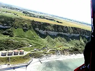 Argiles d'Octeville exposed near the base of cliffs near Octeville-sur-Mer, with Chalk in the upper exposure