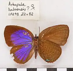 Arhopala baluensis is a butterfly in the family Lycaenidae. It was described by George Thomas Bethune-Baker in 1904. It is found in the Indomalayan realm (Borneo).[2]