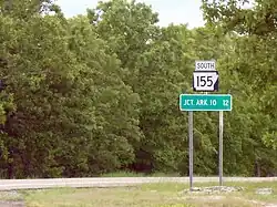 2. ^ Although highways in the United States run from south to north and west to east, the Arkansas State Highway and Transportation Department lists Highway 155, Section 6 beginning at AR 60 and running south.[4]