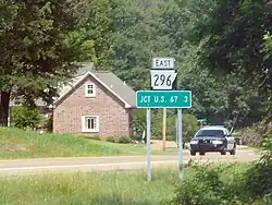 Highway 296 (AR 296, Ark. 296, and Hwy. 296) is an east–west state highway in Miller County. The route begins at US Highway 59 (US 59) and US 71 in Texarkana (State Line Avenue) and runs east to US 82 in the eastern part of the county. Highway 296 serves as an arterial street in Texarkana west of US 67, but is decidedly rural in its length east of US 67, passing through sparsely populated wooded areas typical of the Arkansas Timberlands. The highway was created on April 24, 1963, but was extended throughout the 1960s and 1970s during a period which Arkansas's state highway system grew greatly. Highway 296 is maintained by the Arkansas State Highway and Transportation Department (AHTD).