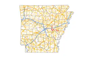 2. ^ a b c d e System Information and Research Division (2014). "Arkansas Road Log Database". Little Rock: Arkansas State Highway and Transportation Department. Archived from the original (MDB) on August 29, 2017. Retrieved March 27, 2016.