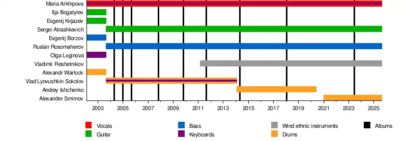 - Vladimir "Volk" Reshetnikov – wind ethnic instruments (2011-present)