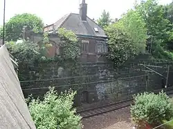 After closure, the station building was retained on Canal Road and was later used as commercial premises. The station sign has been repainted but not in its original colours or font. Nothing remains of the wooden footbridge and the island platforms. The remains of the entrance archway that led onto the bridge was bricked up. A gap remains between the surviving two lines showing where the former island platforms formerly stood.[1]