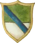 Coat of arms of the Gropa (1680) The Gropa were a noble Albanian family who ruled over the eastern shore of Lake Ochrida as early as the 13th century. In recognition of the services rendered, Sevasto Paulo Gropa was granted dominion over several lands by Charles I of Anjou through a royal decree, dated May 18, 1273. Encompassing parts of the Ebu Valley, they included the villages of Radicis, Cobocheste, Zuadigorize, Sirclani and Crave Zessizane.[14] Grand Zupan Andrea Gropa assumed control of Ochrida following the decline of the Prilep Lordship in 1371. Under his rule, the region remained an independent domain until 1380, when Karl Thopia, another prominent Albanian lord, took over governance. Zaccaria Gropa distinguished himself as a commander in several battles against the Turks and was head of the colony that migrated to Sicilia in 1465.[15] The coat of arms of the Gropa lineage is depicted in the 1680 catalogue "La Universita delle Insegne Ligustiche Delineate da Gio Andrea Musso" (p. 13)