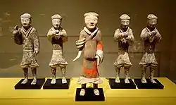 Han military official. The "Wuguan"(武冠) hat with pheasant-tail decorations denominates martial status.[1][2]