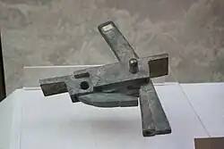 The jian was mentioned as one of the "Five Weapons" during the Han dynasty, the other four being dao, spear, halberd, and staff. Another version of the Five Weapons lists the bow and crossbow as one weapon, the jian and dao as one weapon, in addition to halberd, shield, and armour.[35]