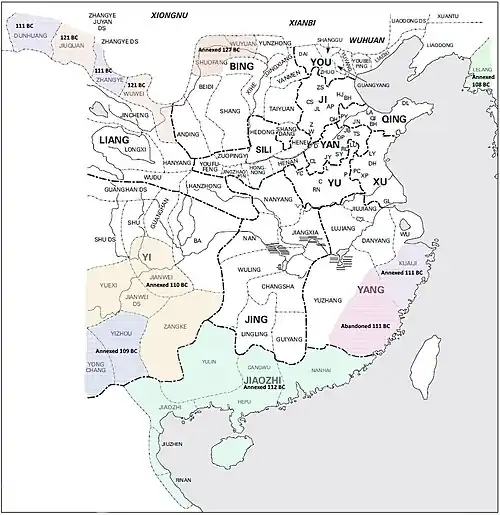 At the start of the Han dynasty, male commoners were liable for conscription starting from the age of 23 until the age of 56. The minimum age was lowered to 20 after 155 BC, briefly raised to 23 again during the reign of Emperor Zhao of Han (r. 87–74 BC), but returned to 20 afterwards. Some convicts could choose to commute their service by serving on the frontier. Conscripts trained for one year and then served for another year either on the frontier, in one of the provinces, or at the capital as guards. A relatively small minority of these conscripts would also have served in the cavalry division in the north, which was primarily composed of volunteers from families of superior status, or water borne forces in the south.[3] Conscripts were generally trained to arrange themselves in a formation five men deep, but actual practice on the battlefield could be flexible with some commanders preferring ranks of up to 10 men deep.[4][5] Implementation of daily best practices was also highly dependent on each individual commander, with some like Li Guang eschewing administrative details while Cheng Buzhi always kept his men in tight formations.[5] After finishing their two years of service, the conscripts were discharged. During Western Han times discharged conscripts could still be called up for training once a year but this practice was discontinued after 30 AD.[6]