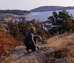 ![]() Arne Blomberg sitting on cliffs | |