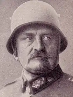 In 1910 Lequis became Chief of Staff of the Thorn Governorate and promoted to Colonel in 1912 and Commander of the Engineers of the I Army Corps in 1913.[1] During World War I, he was initially chief of the general staff of the governorate of Poznań and from October 1914, he was chief quartermaster of the 2nd Army and in December 1914, he was promoted to major general.[1] In May 1916 he was appointed commander of the 104th Infantry Brigade and in November of the same year he took charge of the 12th Division.[3] In 1917 he was awarded the Pour le Mérite and, after successfully participating in the Battle of Caporetto, was awarded the Pour le Mérite with Oak Leaves.[4] In March 1918 he took part in the German spring offensive with his division and was promoted to lieutenant general in July. He was then made governor of Metz before returning to Berlin after the Armistice of 11 November 1918 was signed.